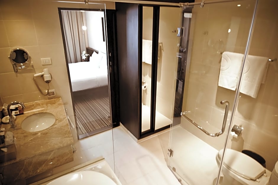 Offering more space, this suite features a 32-inch flat-screen TV, a DVD player, and a two-seater sofa. Features a bathroom with a spa bathtub and separate rain shower.